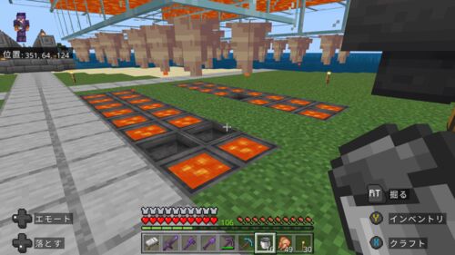 こんにちはこんばんはぐりんごです! サボテン・竹・サトウキビと一通り放置で収穫できるものを作りまして、いよいよ大きいものを作ろうかと思いますが、その前にもろもろの雑用をこなしておきます。 まずは溶岩汲みから。 溜まってるね! いや~ホント、毎…